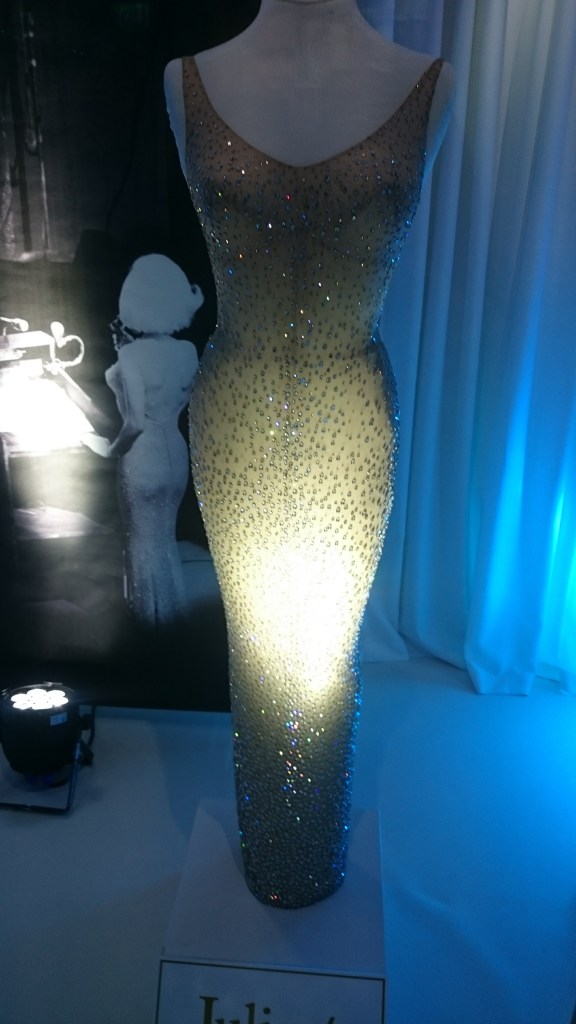 A temporary exhibit in 2016 at the Newbridge Silverware museum – the dress that Marilyn Monroe wore to sing Happy Birthday to President JF Kennedy, which subsequently sold at auction that year, for a record-breaking $4.8m