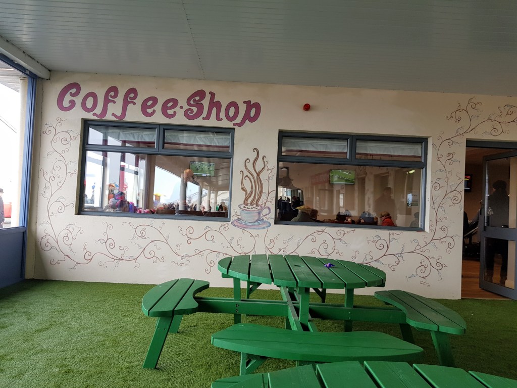 Ample bars and a separate coffee shop with slouchy sofas , there is also a cafeteria which serves up carvery dinner and sausage & chip type meals.